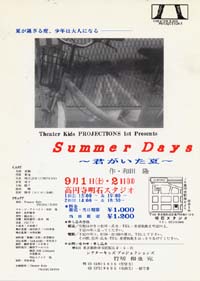 シアターキッズプロジェクションズ 9/1(土)〜9/2(日) 「Summer Days 〜君がいた夏〜」 |