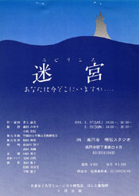 大妻女子大学ミュージカル研究会 ぱんと葡萄酒 2/27(土)〜2/28(日) 「迷宮 あなたは今どこにいますか・・・」 |
