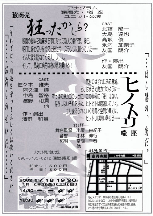 嗤座/猿商売 ユニット公演名「アナグラム」